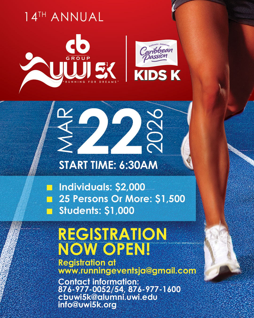CB Group UWI 5K & Run with Passion Kids K – Sunday, March 22, 2026 @ 6:30am